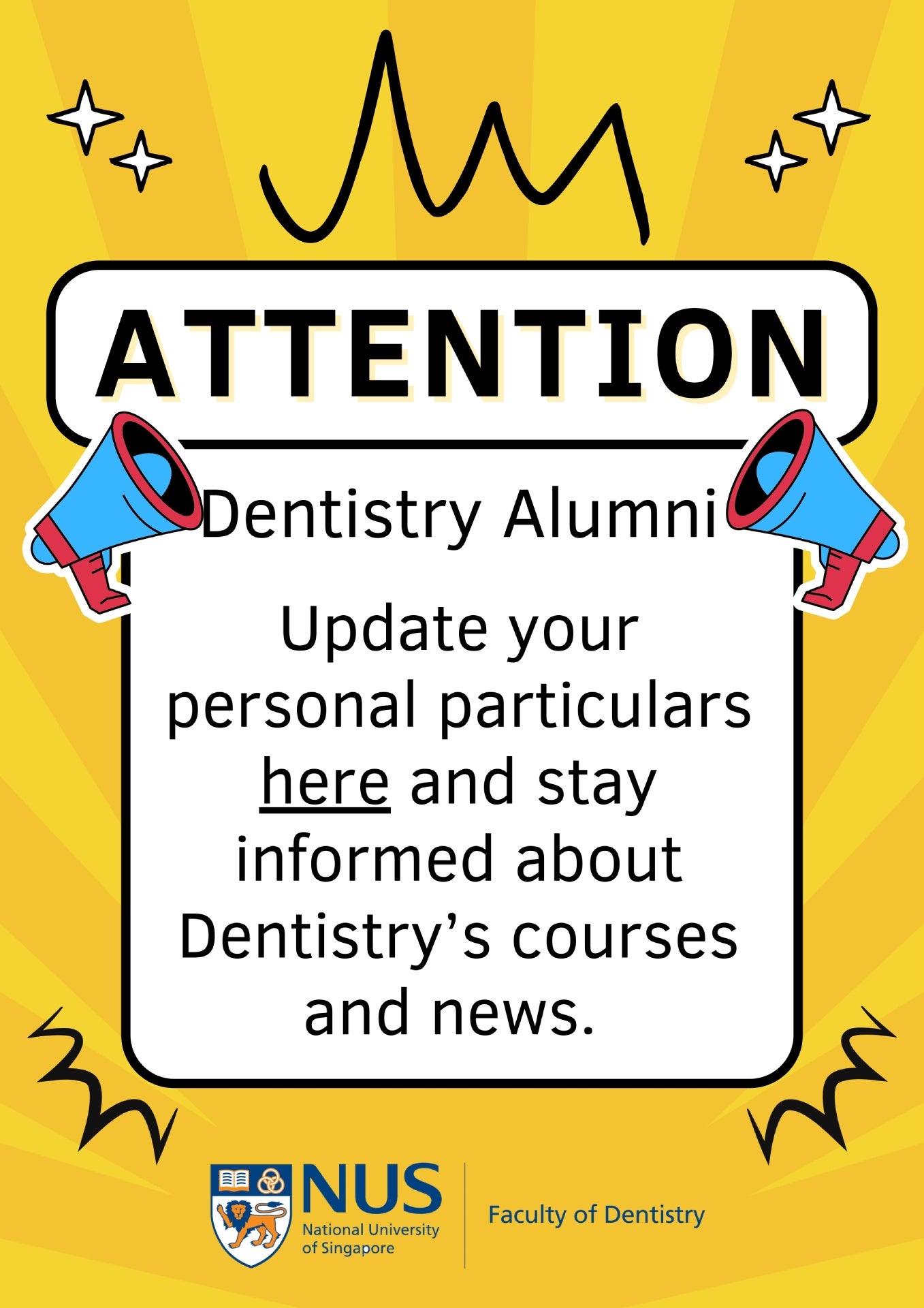 With this online platform, the Faculty will share updates on upcoming events for DENTALumni. These events aim to cater to different interests of our alumni and could range from continuing education programmes to interest groups. Through these events, the Faculty hopes to bring DENTALumi together and build a closer-knit community. If you would like to plan milestone reunion events for your class, the Faculty will be happy to support your planning and publicity efforts through this platform too.