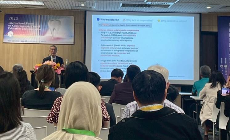 In light of the increasing use of AI across many settings including dental education, Associate Professor Kelvin Foong, Director of the Orthodontics Residency Training Programme and Research Lead (Education Research) at NUS Dentistry, delivered a lecture on “Transforming Dental Education with Generative Artificial Intelligence – An Imperative for Collective Action” to heighten fellow educators’ awareness of the emergence of generative AI and the opportunities to leverage it for dental education.
